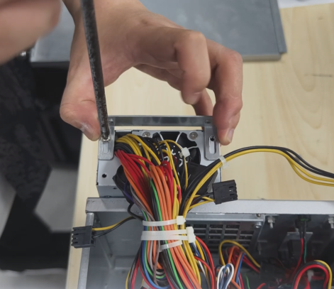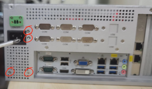 4.接口拔完后需(xu)要將電源螺絲卸(xie)下,先(xian)將側(ce)邊的兩顆卸(xie)下,再將另(ling)一側(ce)的四(si)顆螺絲卸(xie)下。