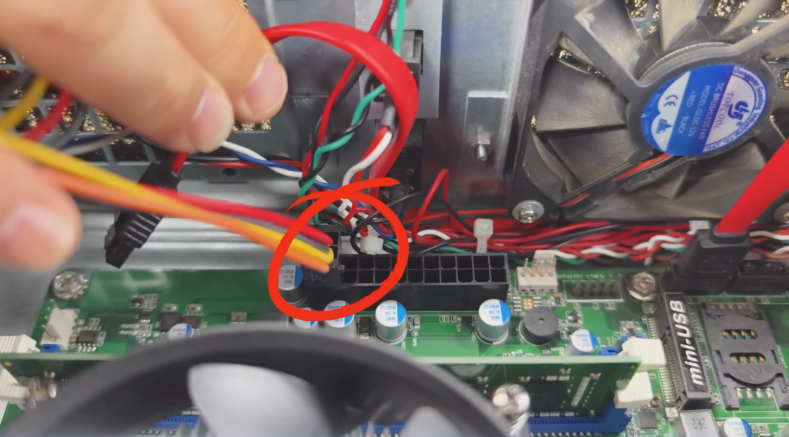 2.下一步將(jiang)接口接上,確(que)認好接口方向后再插入(ru),可以看到插的是靠內的四個口。