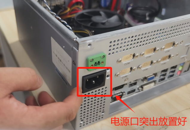 4.下一步(bu)將電源輕輕放進工(gong)控機,注意(yi)電源口位(wei)置要對(dui)接好,突出(chu)放置。