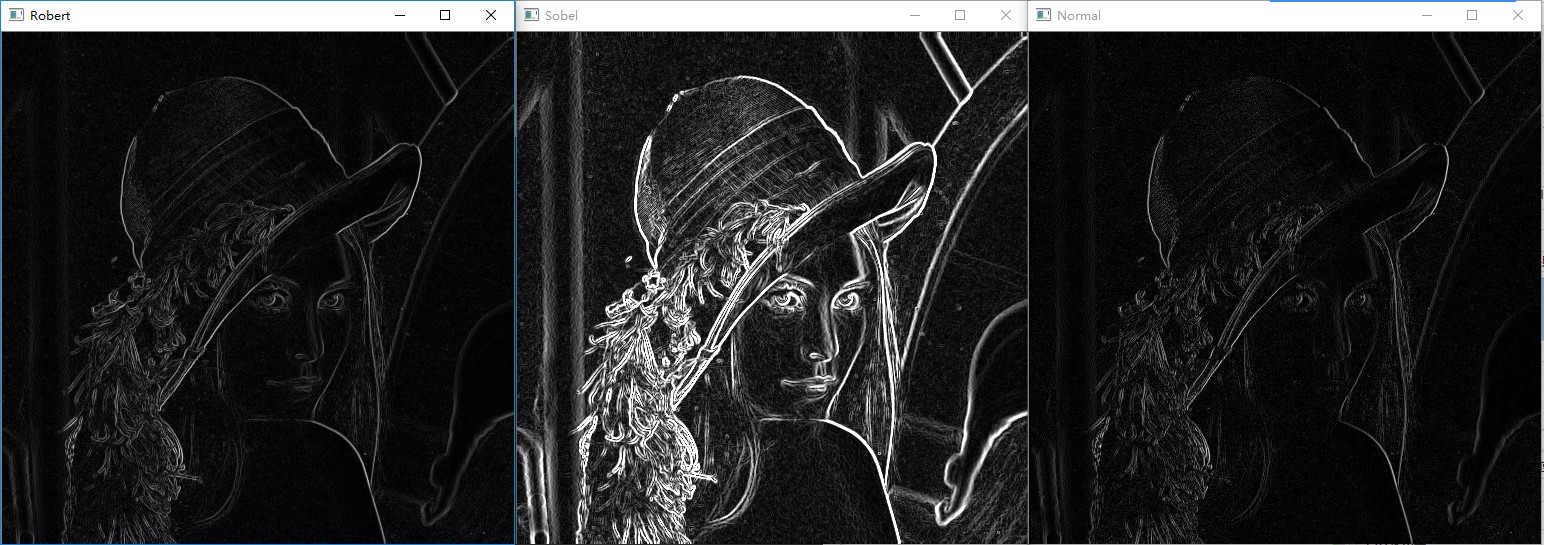 上述代碼中調用Sobel分別得到圖像在x和y方向的偏微分和