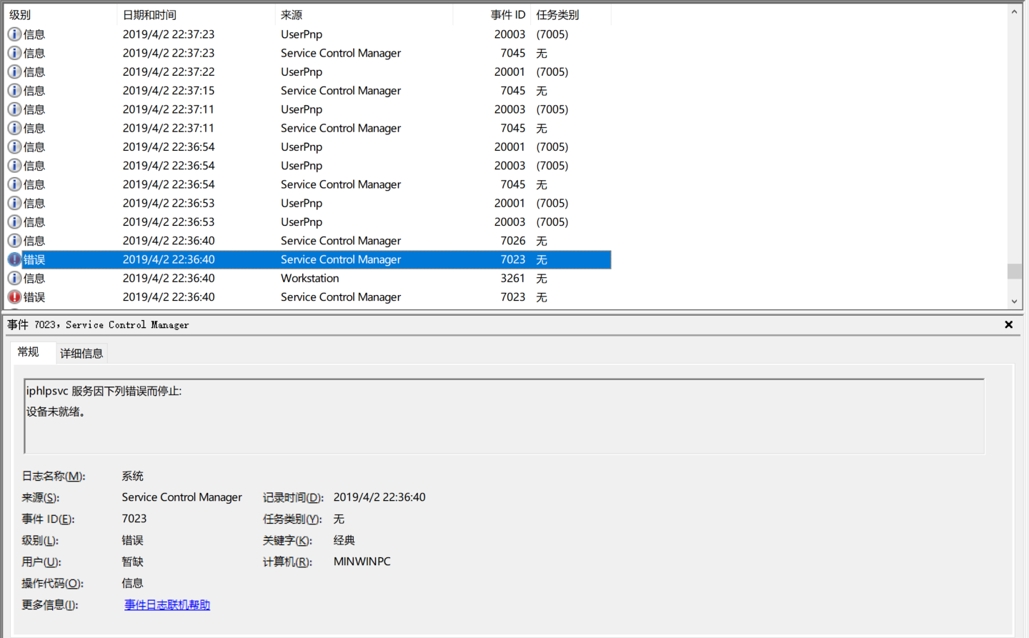 win10 事件(jian)查看器里面系統日志 來源Service Control Manager 事件(jian)ID 7023