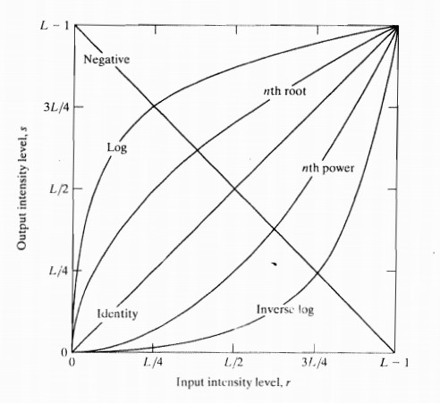 在進行圖像增強時,上述的線性變換函數用的較多的就是圖像反轉了,根據上面的參數,圖像反轉的變換函數為: