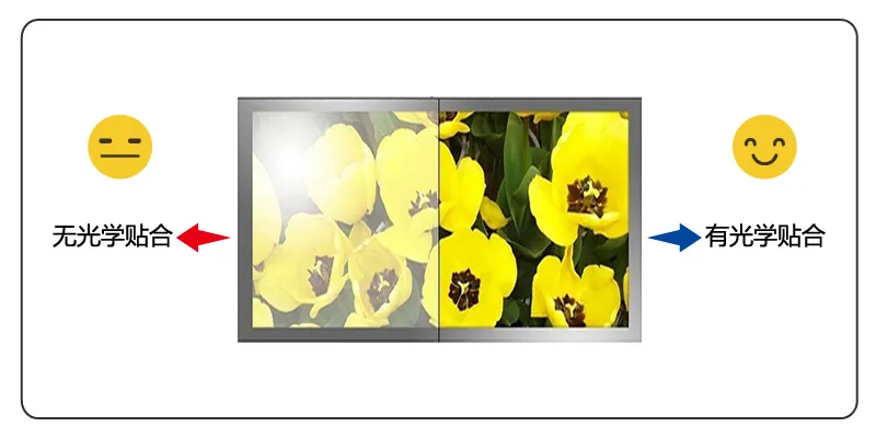 減少眩光(guang)(guang):采用光(guang)(guang)學(xue)貼合的屏幕增加的透光(guang)(guang)率減少了來(lai)自外部光(guang)(guang)源的眩光(guang)(guang)。