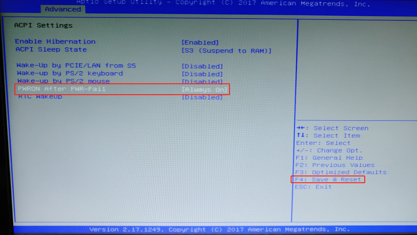 設置上(shang)電自啟(qi)動(dong)為”Always On”