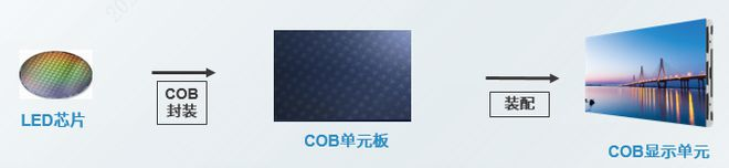 COB技術路(lu)線(xian)是發將光芯片(晶圓)直(zhi)接(jie)(jie)焊接(jie)(jie)在PCB板上,然后整(zheng)體覆膜形成單元模組(zu),最后拼接(jie)(jie)成一整(zheng)塊(kuai)LED屏(ping)。