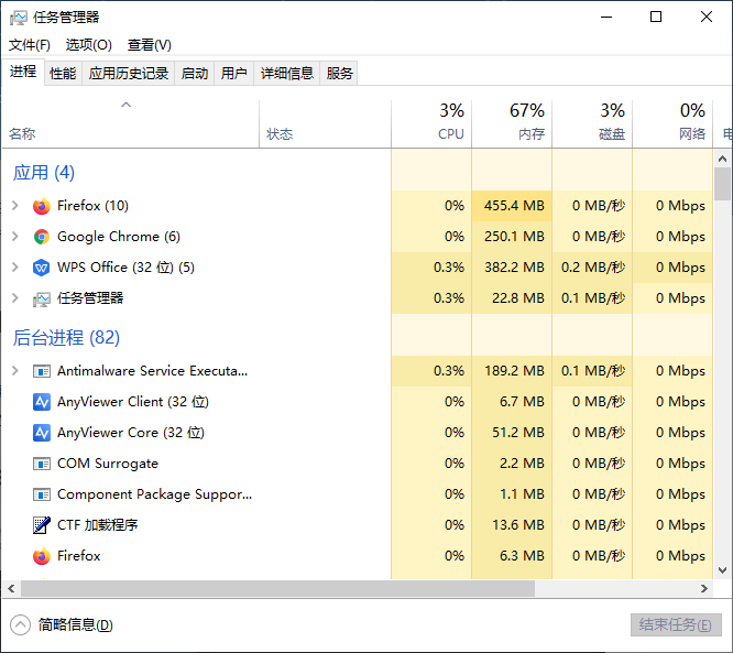 2.進入任務管理后,可以看到有哪些應用(yong)在運行。