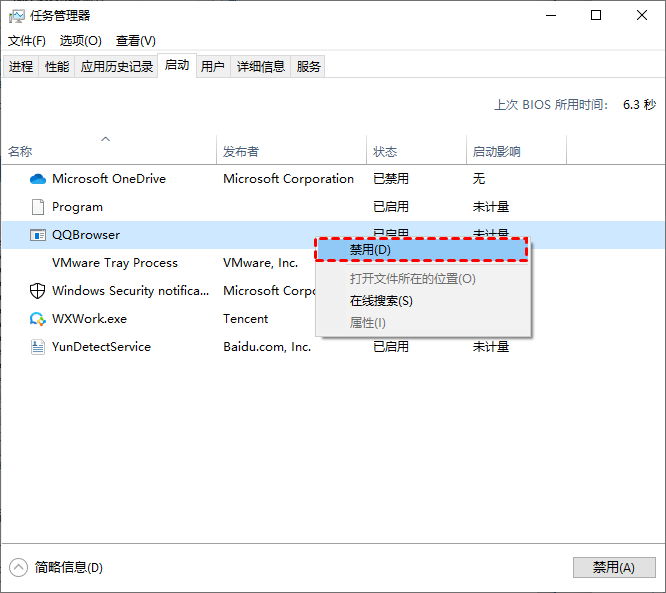 2.點(dian)擊(ji)任務(wu)管理器窗(chuang)口的啟動選項,鼠(shu)標右鍵單擊(ji)需要(yao)關閉啟動的進(jin)程,在(zai)彈(dan)出(chu)的界面上點(dian)擊(ji)禁用即可。