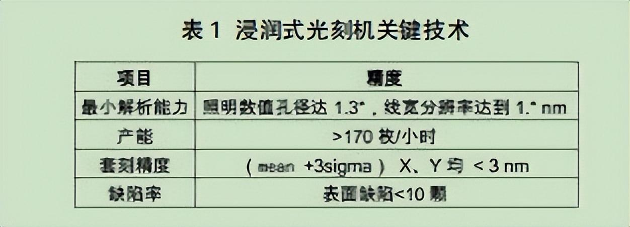 隨著浸潤式(shi)光刻技(ji)術的發展和成(cheng)熟度越來(lai)越高,目(mu)前其精度已然達到 28 nm 生產工藝節(jie)點(dian),其各項(xiang)主(zhu)要性能也得到業界認可,如表 1 所(suo)示。