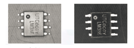 一顆芯片在明(ming)場與暗場下的成像,左明(ming)右暗