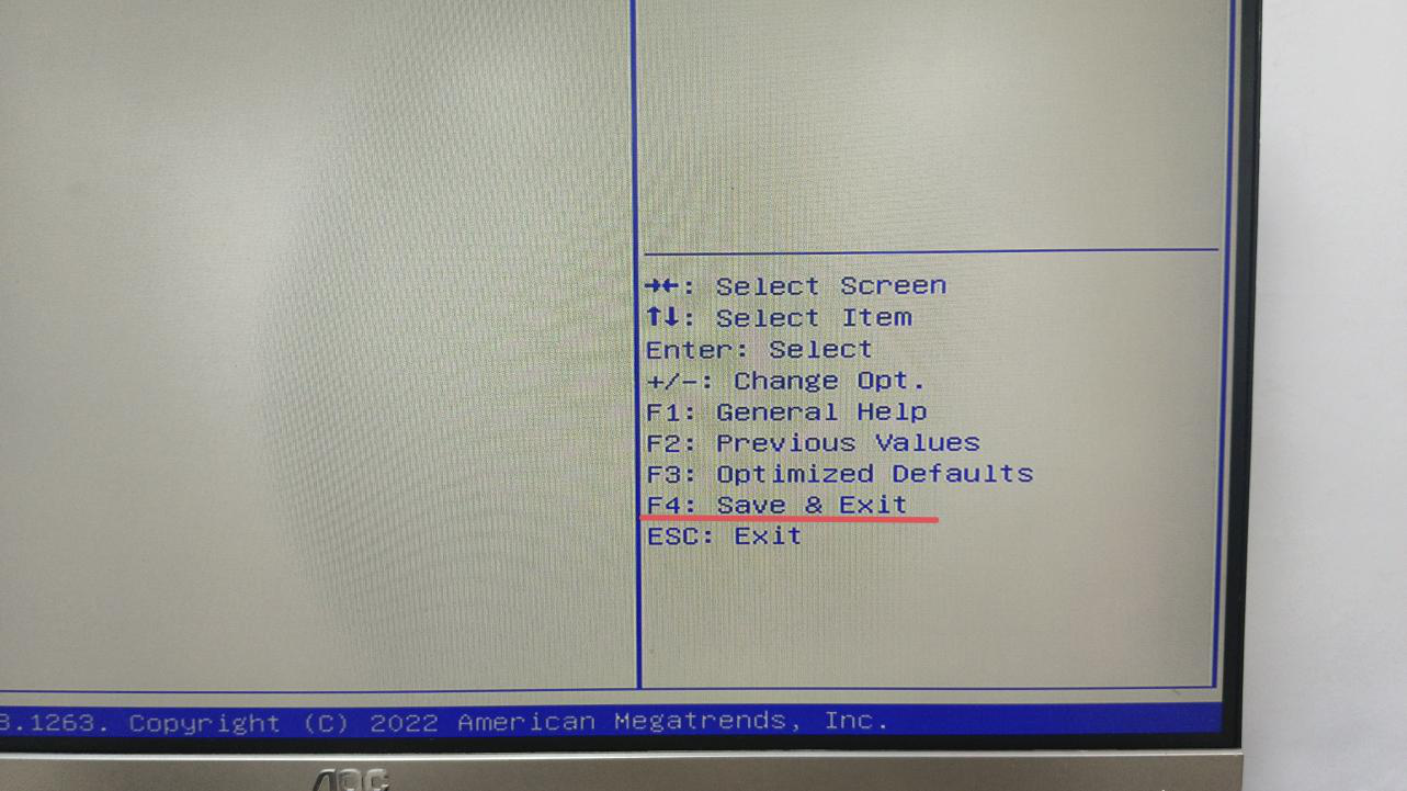 8.按(an)照 BIOS 界面的(de)提示按(an)鍵盤上的(de)“F4”,保存退出。