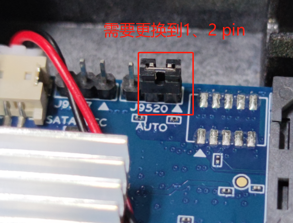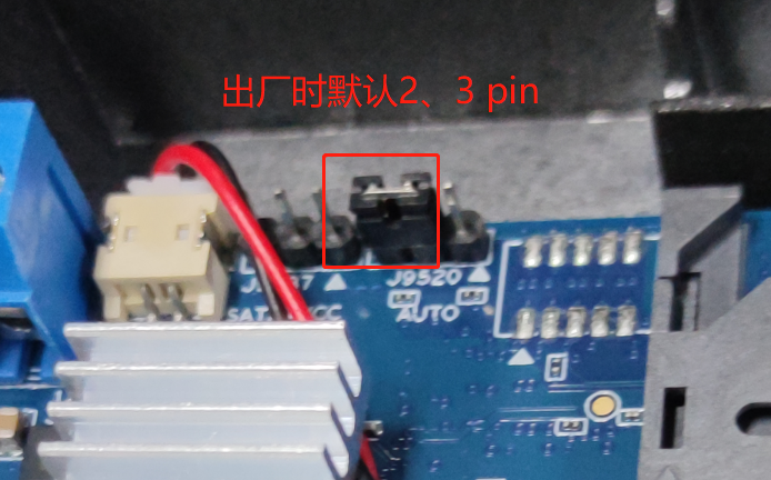 2、找(zhao)到J9520,出廠默(mo)認是(shi)接了2、3 PIN,不會上電自動(dong)開機(ji),需要更換(huan)成(cheng)1、2 PIN