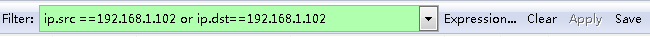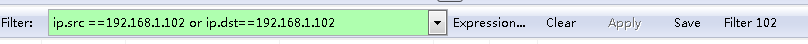 ip.src ==192.168.1.102 or ip.dst==192.168.1.102 | 源地址或者目標地址是192.168.1.102 |