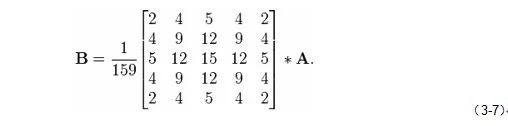 以一個5×5的高斯濾波(bo)模板為例(見公式3-7),對圖(tu)像A應用高斯濾波(bo)可得B。下面(mian)對圖(tu)像的光強梯(ti)度統(tong)計都(dou)基于圖(tu)B。