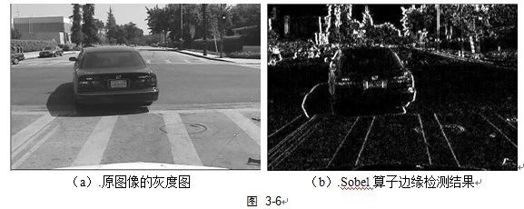 公式3-9中,*表示二維卷積(ji)運算。這(zhe)里(li)建立的(de)坐(zuo)標系在x坐(zuo)標方向(xiang)向(xiang)右(you),y坐(zuo)標方向(xiang)向(xiang)下,在圖(tu)像(xiang)中的(de)每個點,用式3-8描述總(zong)梯度大小(xiao)及方向(xiang)。用Sobel算子進(jin)行邊(bian)緣檢測結果見圖(tu) 3?6所示。