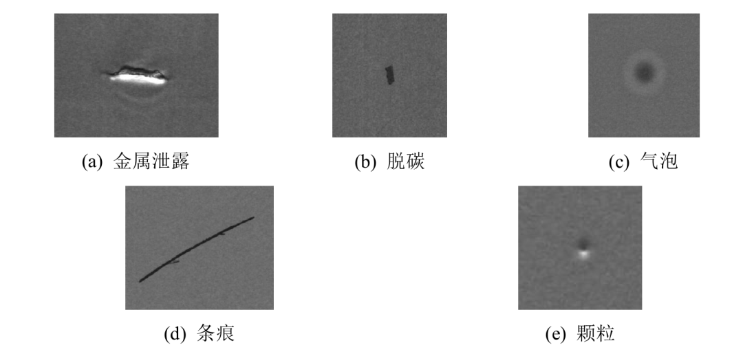 鋰(li)電(dian)(dian)池(chi)電(dian)(dian)極片(pian)(pian)整(zheng)個的(de)生產(chan)(chan)工(gong)藝流程是(shi)十分復雜的(de),每一道工(gong)藝步(bu)驟都有嚴格的(de)要求,任(ren)何(he)一道工(gong)藝步(bu)驟出(chu)現問題,都有可(ke)能(neng)導致生產(chan)(chan)出(chu)的(de)電(dian)(dian)極片(pian)(pian)存(cun)在(zai)各種各樣(yang)的(de)缺(que)陷,從而影響后續(xu)生產(chan)(chan)出(chu)的(de)鋰(li)離子電(dian)(dian)池(chi)的(de)質量。根(gen)據對(dui)采集(ji)到的(de)實際工(gong)業生產(chan)(chan)中鋰(li)電(dian)(dian)池(chi)電(dian)(dian)極片(pian)(pian)表面(mian)(mian)圖(tu)像的(de)分析,本文將常見的(de)鋰(li)電(dian)(dian)池(chi)電(dian)(dian)極片(pian)(pian)表面(mian)(mian)存(cun)在(zai)的(de)缺(que)陷分為五類(lei),分別為金(jin)屬泄露(lu)、脫碳、氣泡、條痕(hen)和顆粒(li)。