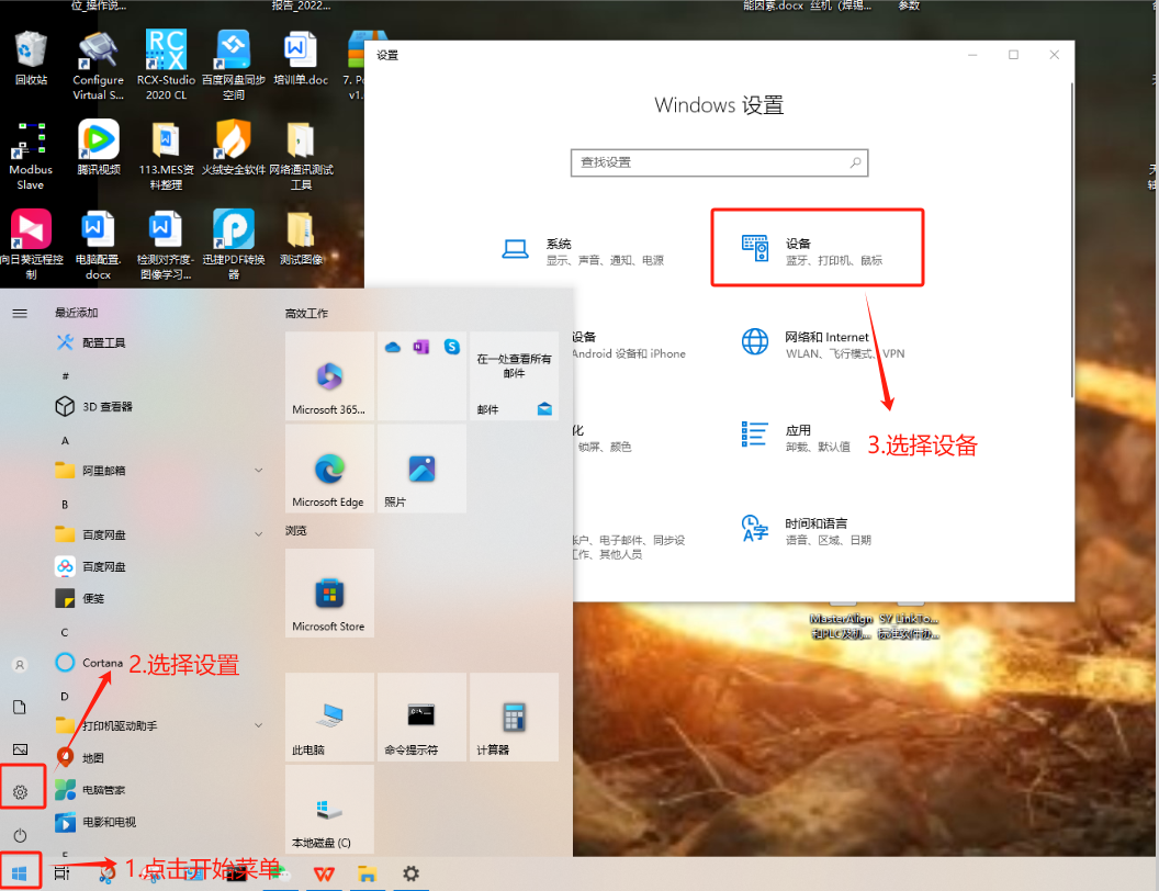 1、點擊(ji)“開始”菜單----->點擊(ji)“設(she)置(zhi)”----->點擊(ji)“設(she)備”