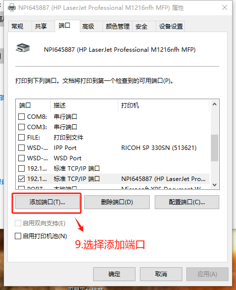 12、回(hui)到選擇“端口”的(de)頁面,點擊“應用”--->點擊“確定”