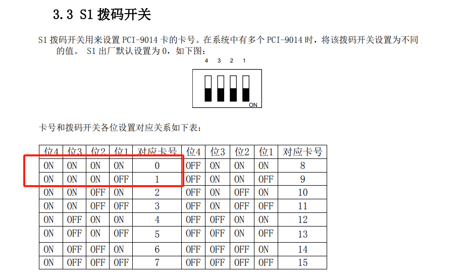 8、如(ru)果安裝多(duo)張9014板卡(ka)的時候(hou)要(yao)設(she)置撥碼,按照順序撥卡(ka)號如(ru)0、1、2這樣