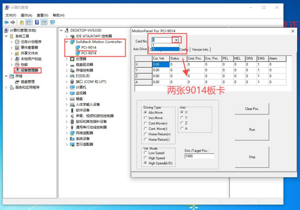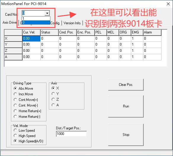 10、也可以去MotionPannel軟件中去查看是否安裝成功,安裝成功可以看到”Card NO”有0,1兩個序號程(cheng)序(xu)打開因無(wu)報錯無(wu)彈窗