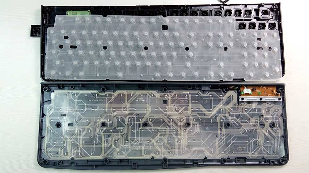 由于聚(ju)酯薄(bo)(bo)膜(mo)所具(ju)有(you)性(xing)(xing)質的(de)(de)(de)影響,使得該薄(bo)(bo)膜(mo)鍵盤具(ju)有(you)良好的(de)(de)(de)絕緣性(xing)(xing)、耐(nai)熱性(xing)(xing)、抗(kang)折性(xing)(xing)和(he)較高(gao)的(de)(de)(de)回彈(dan)性(xing)(xing)。開(kai)關電(dian)路(lu)的(de)(de)(de)圖形,包括開(kai)關的(de)(de)(de)聯(lian)(lian)機及(ji)其引(yin)出(chu)(chu)線(xian)均采用低電(dian)阻,低溫條件下固化的(de)(de)(de)導電(dian)性(xing)(xing)涂料(liao)印刷(shua)而(er)成。因此,整(zheng)(zheng)個薄(bo)(bo)膜(mo)鍵盤的(de)(de)(de)組成,具(ju)有(you)一定的(de)(de)(de)柔軟(ruan)(ruan)性(xing)(xing),不僅適合于平面(mian)體(ti)(ti)上使用,還能與(yu)曲面(mian)體(ti)(ti)配合。柔性(xing)(xing)薄(bo)(bo)膜(mo)鍵盤引(yin)出(chu)(chu)線(xian)與(yu)開(kai)關體(ti)(ti)的(de)(de)(de)本身是一體(ti)(ti)的(de)(de)(de),在制作群體(ti)(ti)開(kai)關的(de)(de)(de)聯(lian)(lian)機時,將其匯(hui)集于薄(bo)(bo)膜(mo)的(de)(de)(de)某一處,并按設計指(zhi)定的(de)(de)(de)位置和(he)標準的(de)(de)(de)線(xian)距向外延(yan)伸,作為柔軟(ruan)(ruan)的(de)(de)(de)、可(ke)任意彎曲的(de)(de)(de)、密(mi)封的(de)(de)(de)引(yin)出(chu)(chu)導線(xian)與(yu)整(zheng)(zheng)機的(de)(de)(de)后置電(dian)路(lu)相連。