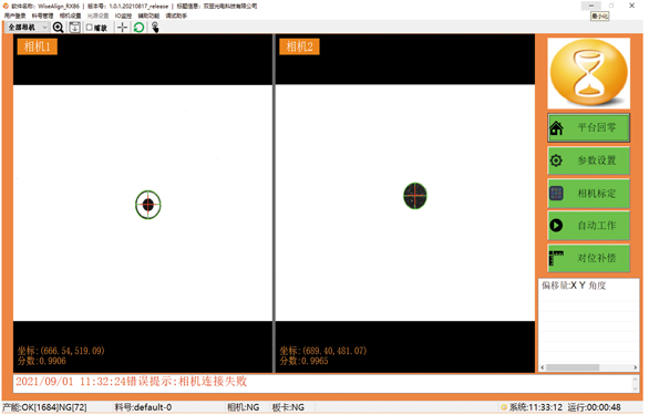 WiseAlign-2C雙相機自對(dui)(dui)位系(xi)統在(zai)工業自動化領(ling)域應(ying)用(yong)(yong)極(ji)為廣泛(fan),軟(ruan)件的(de)界(jie)面(mian)操作簡便,便于用(yong)(yong)戶快(kuai)速上手(shou)。在(zai)此(ci)案例(li)中,設(she)備利(li)用(yong)(yong)WiseAlign視覺對(dui)(dui)位軟(ruan)件進(jin)行高精度(du)、高速度(du)的(de)對(dui)(dui)位作業,快(kuai)速進(jin)行網板的(de)對(dui)(dui)齊,保證了油墨在(zai)印刷(shua)的(de)時候能(neng)準確無誤,在(zai)油墨印刷(shua)中的(de)對(dui)(dui)位精度(du)可(ke)達(da)到±0.03mm,且對(dui)(dui)位過(guo)程在(zai)0.4秒(miao)內即可(ke)完成(cheng)。
