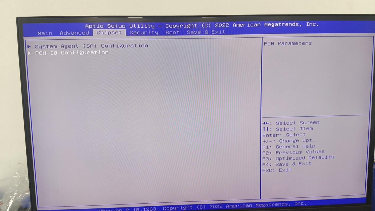 2、進入BIOS界面,選擇”Chipset”下的”PCH-IO Configuration”