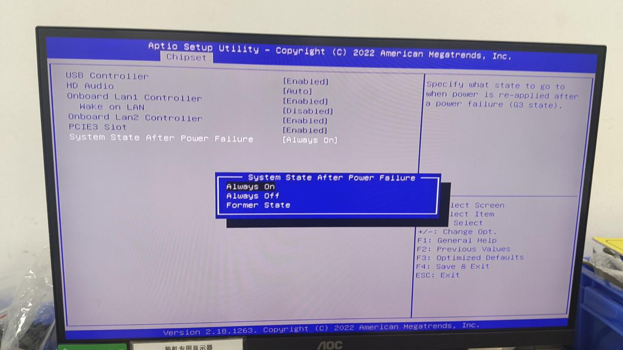 5、選中”Always On”后按(an)鍵(jian)盤的”Enter”鍵(jian)位(wei)(回(hui)車鍵(jian)),選中’Yes’鍵(jian)后,再按(an)回(hui)車鍵(jian)
