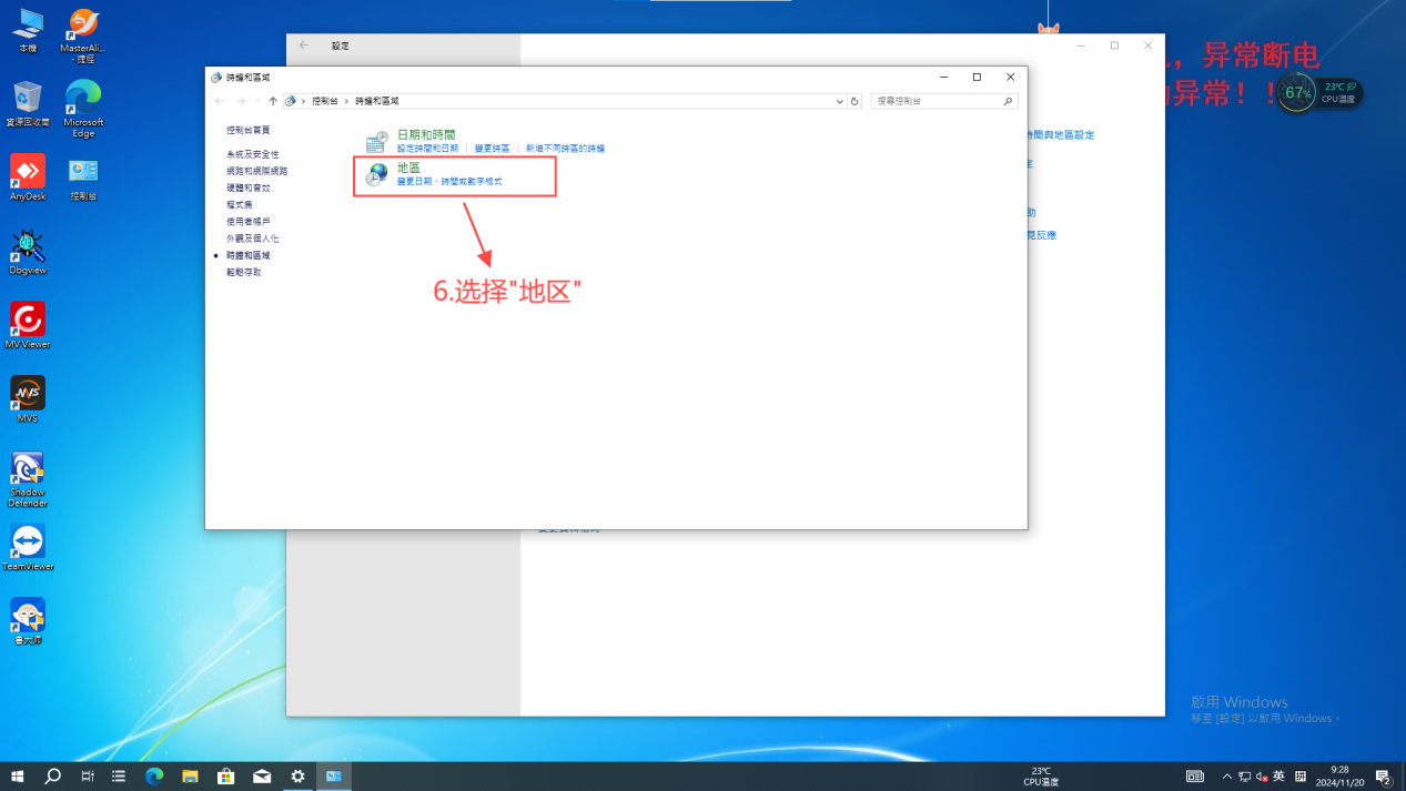 6、選擇“地區”