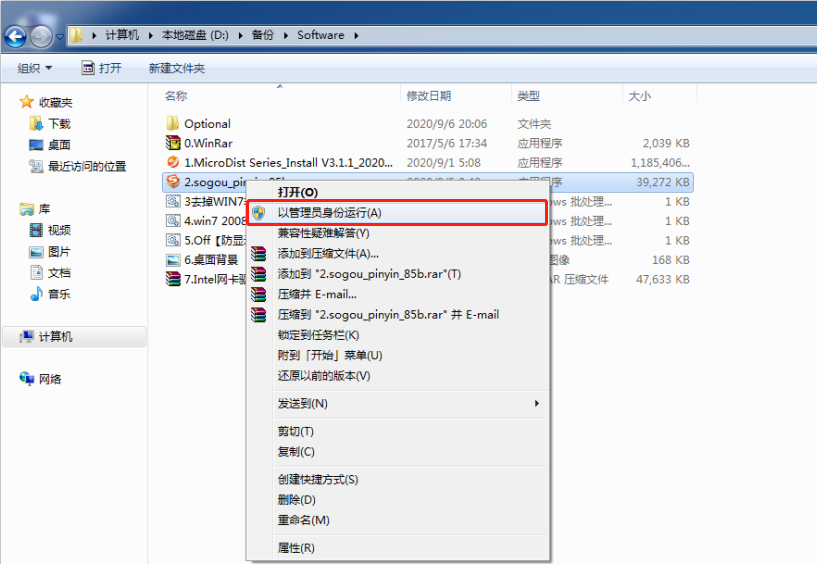 右(you)鍵單(dan)擊“2.sogou_pinyin_85b.exe”程(cheng)序(xu)安(an)裝包(bao)。