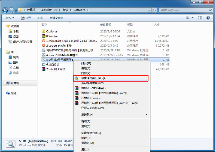 右(you)鍵單擊(ji)文件“5.Off【防顯(xian)示(shi)器(qi)黑屏】.bat”。