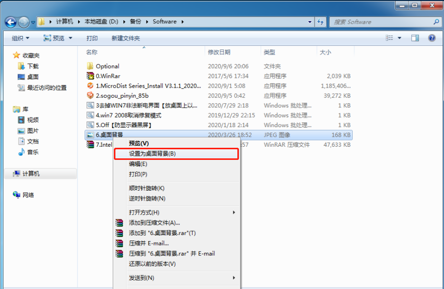 右(you)鍵單(dan)擊文件“6.桌面背景.jpg”。點擊“設置為桌面背景”。