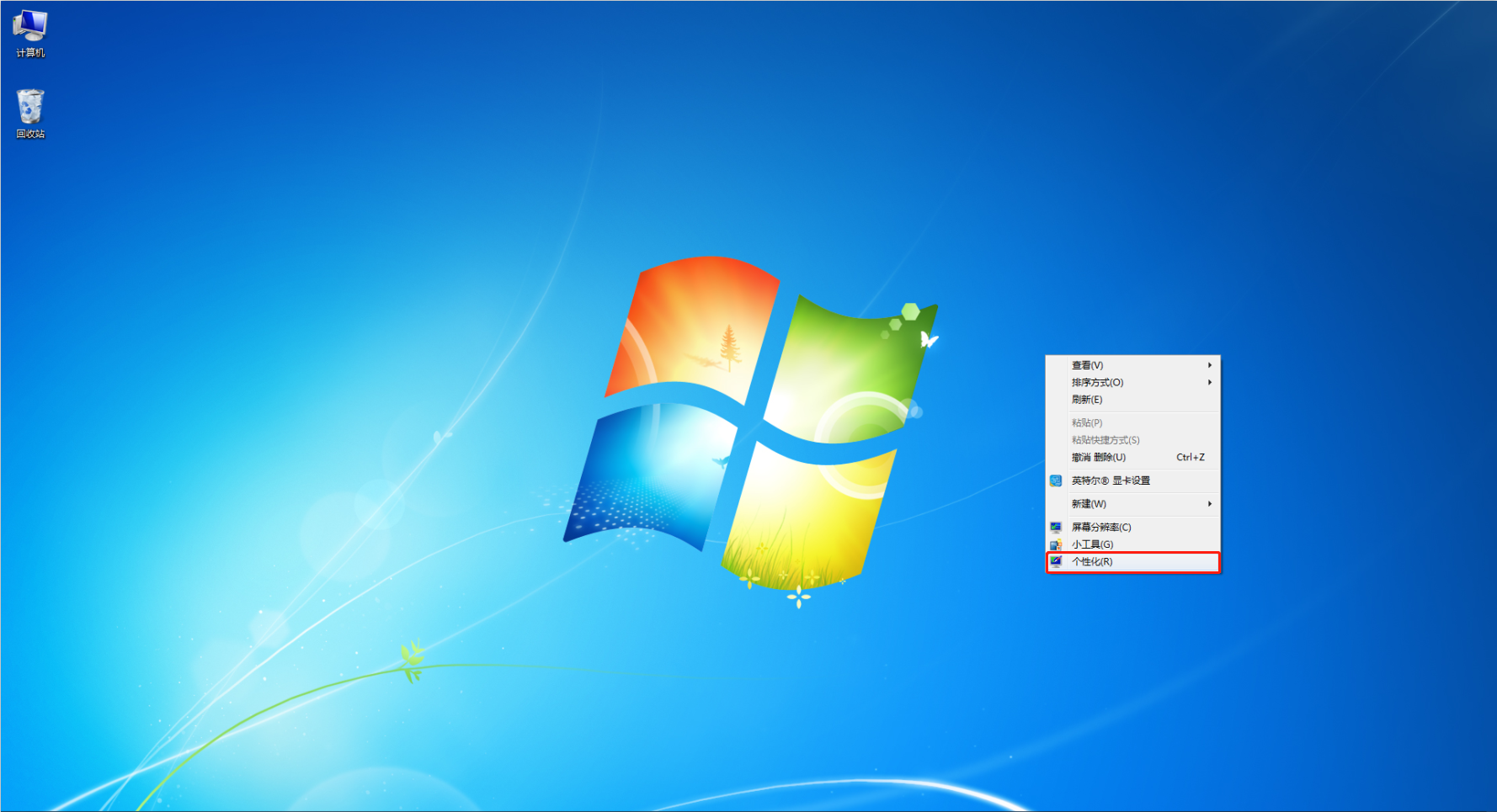回到桌(zhuo)面(mian),在桌(zhuo)面(mian)空白區域(yu)右擊(ji)。點擊(ji)“個性化”。