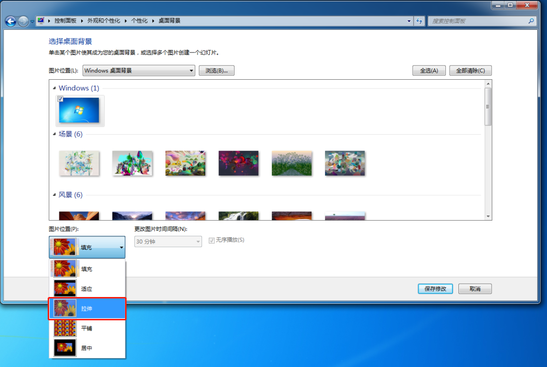 在(zai)“圖片位置”選項中選擇“拉(la)伸”