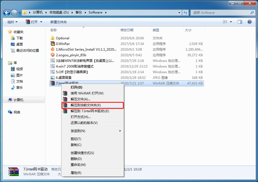 右鍵單擊文件“8.Intel網卡驅動.rar”。