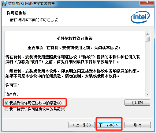 →勾選(xuan)“我接受該許(xu)可證(zheng)協(xie)議中的條款(A)”
