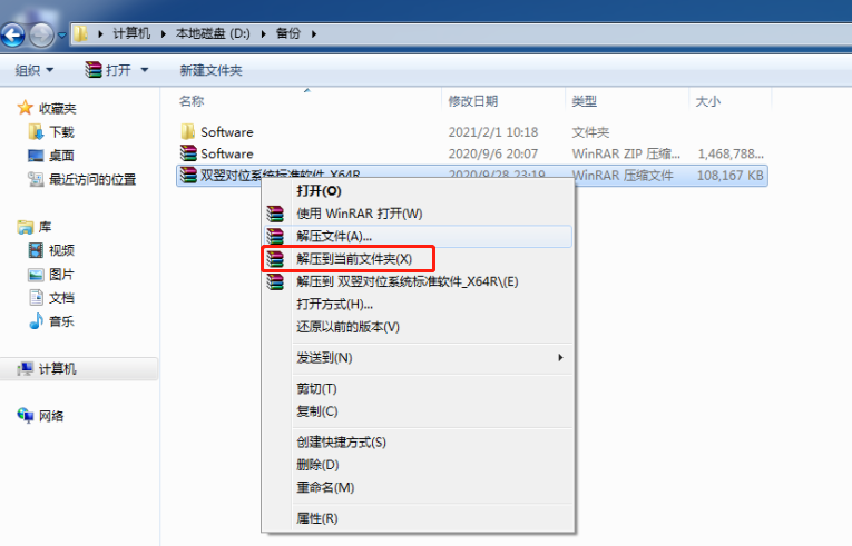 將U盤(pan)中的“Software”壓縮包文(wen)件(jian)(jian)拷(kao)貝(bei)至“備份”文(wen)件(jian)(jian)夾中