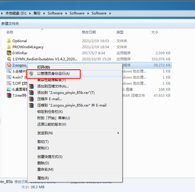 右鍵(jian)單擊“3.sogou_pinyin_85b.exe”程序安裝(zhuang)包。
