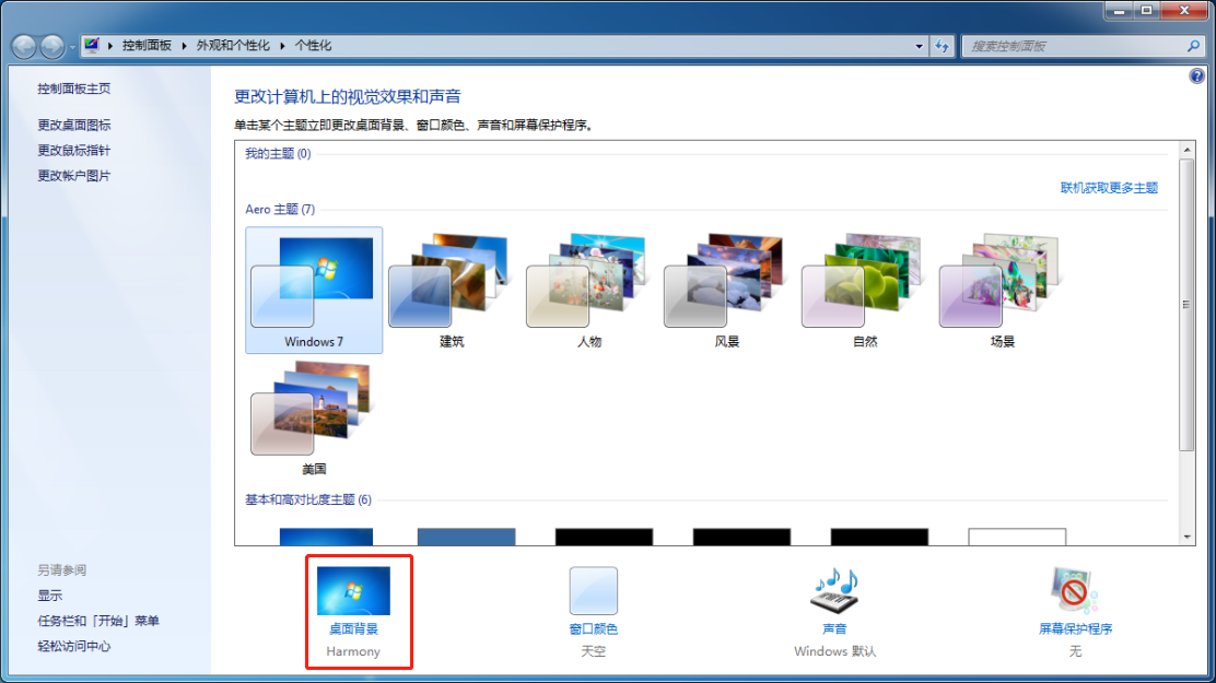在個性窗口中,點擊(ji)“桌(zhuo)面背景”