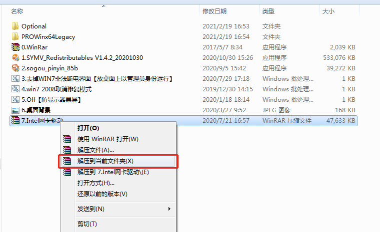 右鍵單(dan)擊文件“8.Intel網卡驅動(dong).rar”。