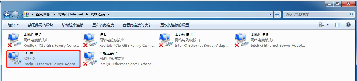 →將(jiang)有“左邊相機”(以上電)的(de)網線(xian)插入網口,將(jiang)對應的(de)網絡名稱(cheng)“本地連接”修改為(wei)“CCD0”