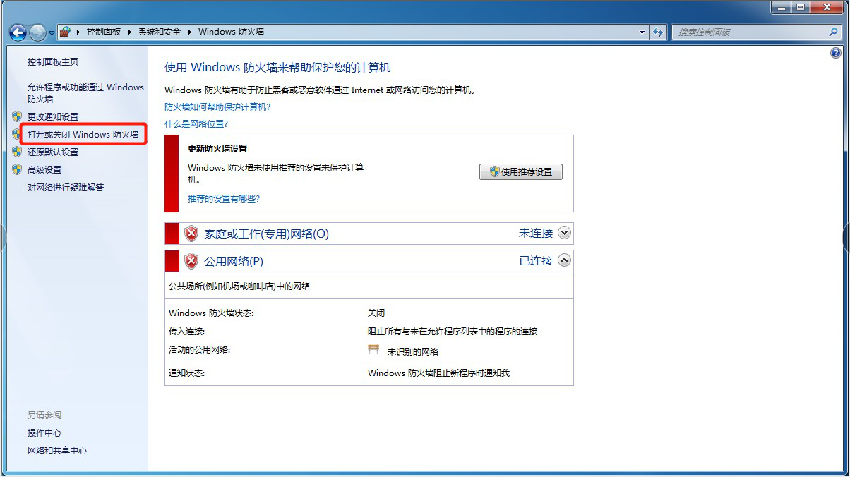 →點擊“打開或關閉 Windows 防火(huo)墻”