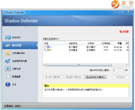→點擊“進入影子模式(shi)”