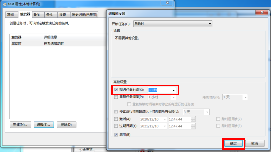 Step10:確定,完成觸發器延遲時間的設置,每次開機時,系統將延遲對應的時間后啟動選定的程序;(注意:程序的路徑和名稱不能更改,如果更改后,需要重新設定)