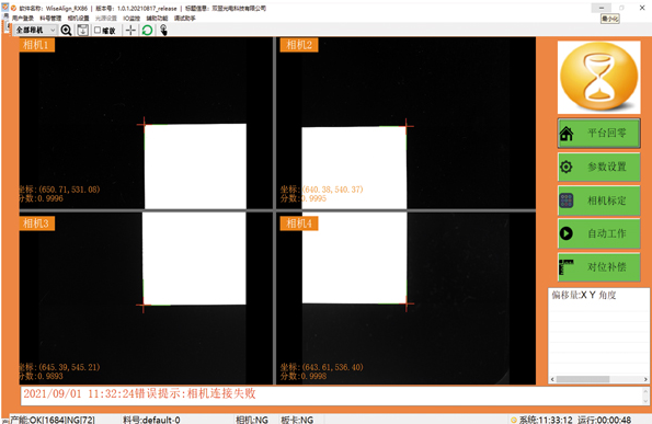 WiseAlign-4C雙相機自(zi)對位(wei)在工業自(zi)動化中應用(yong)(yong)非常廣泛,機構工藝簡單(dan)易(yi)實現,軟(ruan)件操作(zuo)簡單(dan)容易(yi)上手。此案例中用(yong)(yong)戶的模切機使用(yong)(yong)WiseAlign軟(ruan)件進行(xing)高精度的對位(wei)生產應用(yong)(yong),在對位(wei)時(shi)候其精度可(ke)達±0.02mm,而(er)對位(wei)時(shi)間(jian)在0.4s內完成。