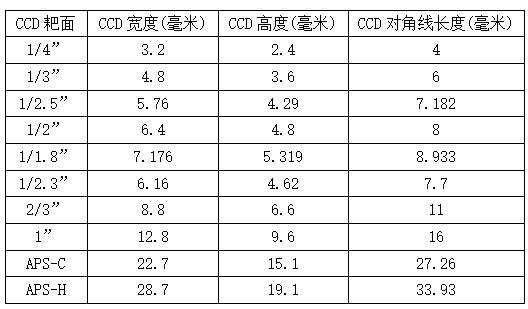CCD攝像機靶面對角(jiao)線有效尺寸(cun)