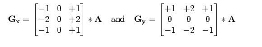 該(gai)算(suan)子包(bao)含兩組(zu)3x3的(de)矩陣,分別(bie)為橫(heng)向(xiang)(xiang)及(ji)縱向(xiang)(xiang),將之與圖(tu)像作平面卷積,即可分別(bie)得出(chu)橫(heng)向(xiang)(xiang)及(ji)縱向(xiang)(xiang)的(de)亮度差分近似值。如果以A代表原(yuan)始圖(tu)像,Gx及(ji)Gy分別(bie)代表經橫(heng)向(xiang)(xiang)及(ji)縱向(xiang)(xiang)邊緣檢測的(de)圖(tu)像灰度值,其公式(shi)如下:
