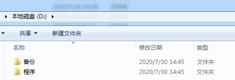 在D盤新建兩個文(wen)件夾,分(fen)別叫“備份”和“程序”。