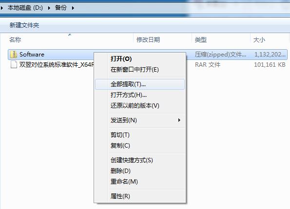 在備(bei)份(fen)文件夾中(zhong)右鍵單擊(ji)裝機(ji)(ji)使(shi)用軟件.rar,選擇“全部提(ti)取(qu)(T)...”,彈出的對話框點擊(ji)“提(ti)取(qu)”。也可(ke)以(yi)先(xian)安(an)裝解(jie)壓工(gong)具,在解(jie)壓“裝機(ji)(ji)使(shi)用軟件.rar”。