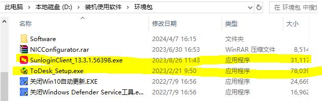 安(an)裝(zhuang)“ToDesk”和“向日葵”時要安(an)裝(zhuang)最新版(ban)本的(de)在“D:\裝(zhuang)機使用軟件\環境包(bao)”路徑下(xia)