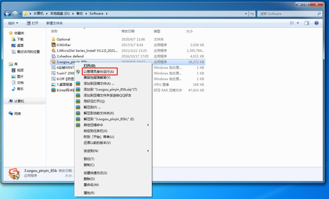 右(you)鍵單擊(ji)“3.sogou_pinyin_85b.exe”程序安裝包。
